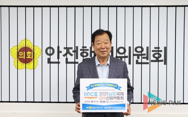 뉴스팍 배상미 기자 | 경기도의회 임상오 안전행정위원장(국민의힘, 동두천2)은 13일 ‘2025 남도국제미식산업 박람회’의 성공적인 개최를 기원하는 릴레이 응원 챌린지에 동참했다.