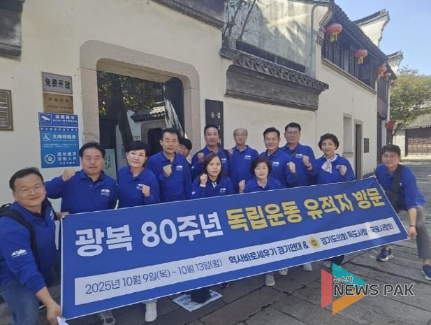 뉴스팍 배상미 기자 | 광복 80주년을 맞아 중국 내 항일 독립운동 유적지를 탐방한 경기도의회 ‘독도사랑ㆍ국토사랑회’와 ‘역사바로세우기 경기연대’가 5일간의 일정을 마치며, 선열들의 숭고한 정신을 이어받아 경기도에서 올바른 역사관을 정립하고, 영토 주권 수호를 위한 활동을 더욱 강력히 펼쳐나가겠다고 다짐했다.