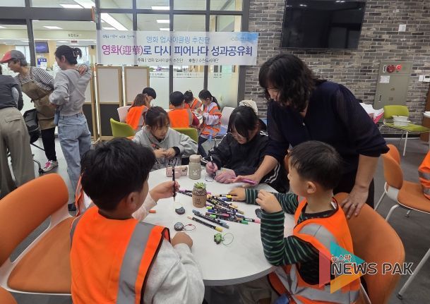 뉴스팍 배상미 기자 | 장안구 영화동 마을만들기협의회는 지난 14일, 영화동 행정복지센터에서 수원시다함께돌봄센터 4호점 어린이들과 함께하는 업사이클링 체험 행사를 진행했다.
