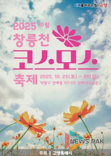 뉴스팍 배상미 기자 | 고양특례시 덕양구는 오는 10월 25일부터 26일까지 양일간 강매석교공원(덕양구 강매동 317-23)에서 ‘2025년 창릉천 코스모스축제’를 개최한다고 밝혔다.