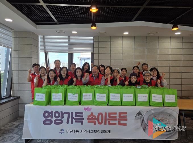 뉴스팍 이소율 기자 | 평택시 비전1동 지역사회보장협의체는 지난 15일 관내 홀로 계신 어르신 및 건강상의 이유로 죽이 필요한 취약계층에 영양 삼계죽과 나박김치를 정성스레 담아 전달하는 행사를 진행했다.