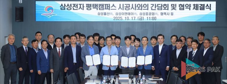 뉴스팍 이소율 기자 | 평택시는 17일에 관내 시공 예정인 삼성전자 평택캠퍼스 대형시공사와 간담회 및 협약체결식을 개최했다.