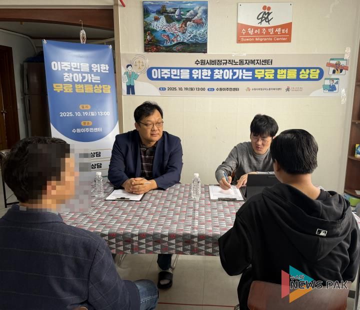 뉴스팍 배상미 기자 | 수원특례시는 19일 수원이주민센터에서 외국인 노동자와 이주민을 대상으로 ‘찾아가는 무료 법률상담’을 운영했다.