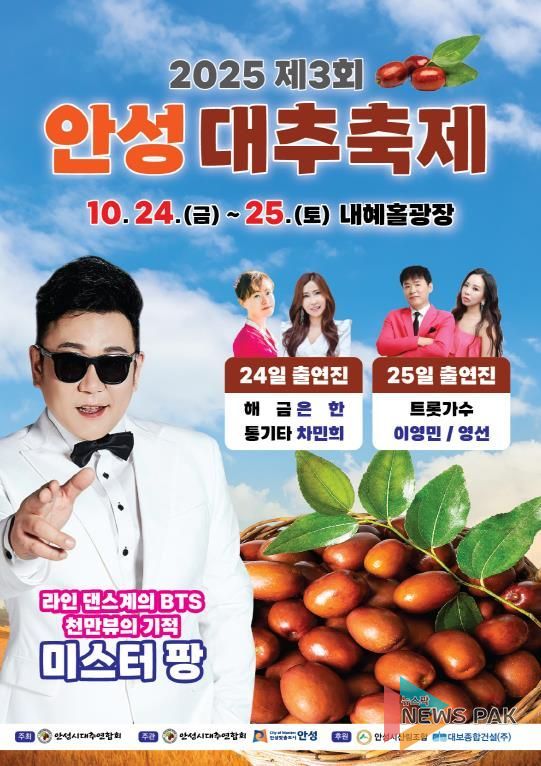이번 행사는 안성시대추연합회와 안성시가 주관하여 진행하는 직거래장터 행사로 약 25개의 판매부스를 운영하고 대추가요제 등 각종 공연이 마련될 예정이다.