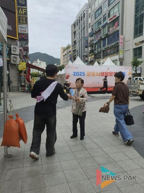 뉴스팍 배상미 기자 | 군포시는 10월 17일 산본로데오거리에서 열린 ‘2025 군포올래행복축제’ 현장에서 시민들을 대상으로 도로명주소 홍보활동을 진행했다.