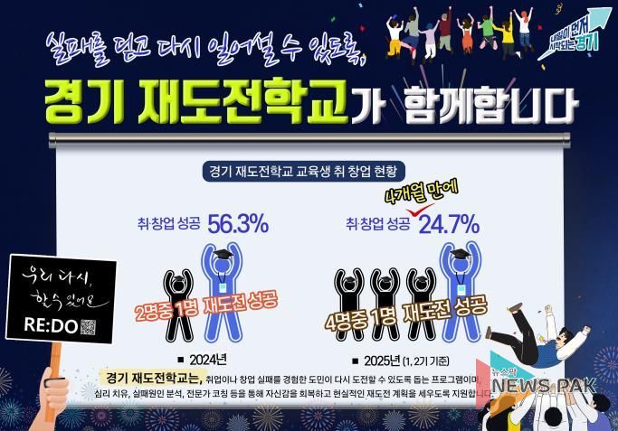 뉴스팍 배상미 기자 | 경기도는 올해 ‘경기 재도전학교’의 교육생 약 25%가 교육 수료 4개월 만에 취업 또는 창업에 성공했다고 23일 밝혔다.