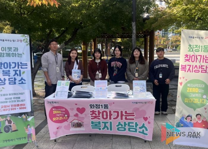 뉴스팍 배상미 기자 | 고양특례시 덕양구 화정1동은 지난 22일, 덕양구청 사회복지과와 고양시 원당종합사회복지관과 함께 복지 사각지대 발굴을 위한 ‘찾아가는 복지상담소’를 운영했다.