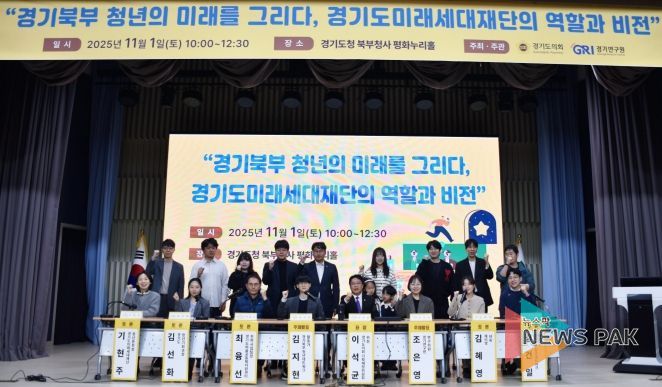 뉴스팍 배상미 기자 | 경기도의회 기획재정위원회 이석균 의원(국민의힘, 남양주1)은 1일 경기도청 북부청사 평화누리홀에서 경기연구원과 공동으로 ‘경기북부 청년의 미래를 그리다 – 경기도미래세대재단의 역할과 비전’ 토론회를 개최하고, 경기북부 청년의 삶과 미래를 위한 정책적 해법을 모색했다.