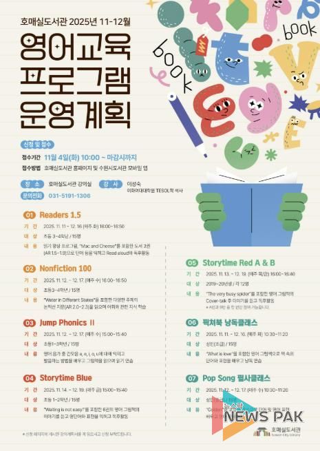뉴스팍 배상미 기자 | 수원시 호매실도서관이 11~12월 운영하는 영어교육 프로그램 참가자를 모집한다.