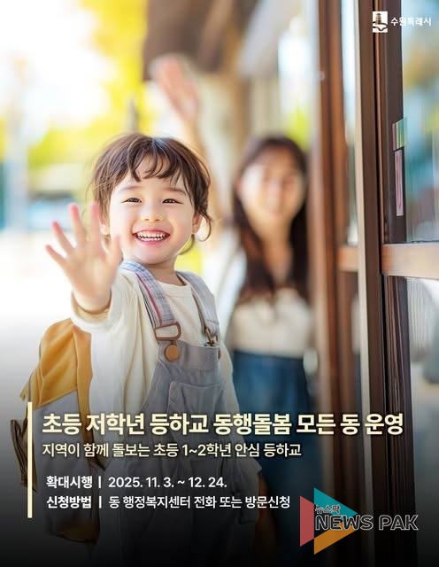 수원시는 이번 전역 확대를 통해 초등 저학년 자녀를 둔 부모들의 육아 부담을 실질적으로 경감하고, 아이들에게 더욱 안전한 생활 환경을 제공할 것으로 기대하고 있다.