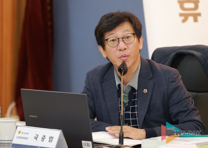 뉴스팍 배상미 기자 | 경기도의회 안전행정위원회 국중범 의원(더불어민주당, 성남4)은 7일 시흥소방서에서 실시된 2025년 행정사무감사에서 소방대원의 근무복 세탁 지원과 터널 화재 대응체계 강화 필요성을 집중적으로 제기했다.