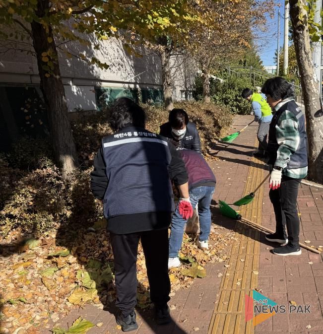 뉴스팍 배상미 기자 | 수원시 영통구 매탄4동 행정복지센터는 지난 10일 가을철 낙엽으로 인한 도로 미관 저해 및 안전사고 예방을 위해 가을철 낙엽 쓰레기 대청소를 실시했다.