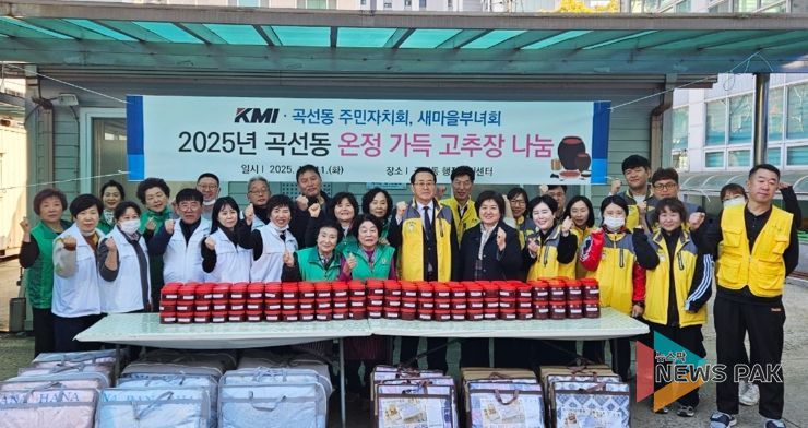 뉴스팍 배상미 기자 | 수원시 권선구 곡선동 행정복지센터는 11일, KMI한국의학연구소, 곡선동 주민자치회, 새마을부녀회와 함께 ‘온정 가득 고추장 나눔 행사’를 진행한다.
