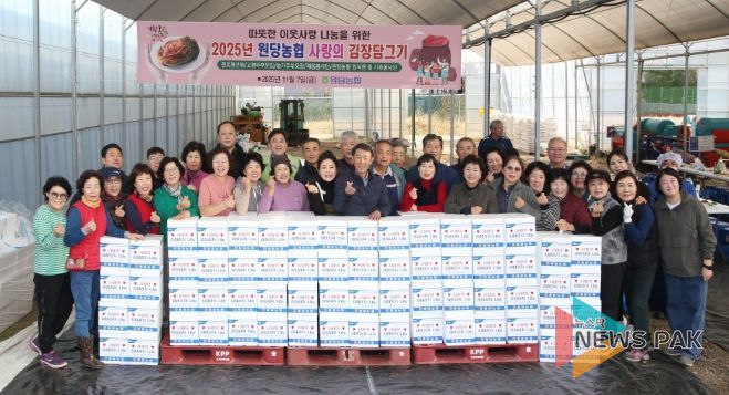 나눔에 참여한 이창림 조합장은 “올해도 어김없이 정성 가득한 김장김치로 이웃사랑을 실천할 수 있어 기쁘다”라며 “우리의 작은 정성이 추운 겨울을 보내야 하는 이웃들에게 따뜻한 위로와 힘이 되기를 바란다. 앞으로도 원당농협은 지역 주민과 함께하며 사회적 책임을 다하는 든든한 동반자가 되겠다”고 말했다.