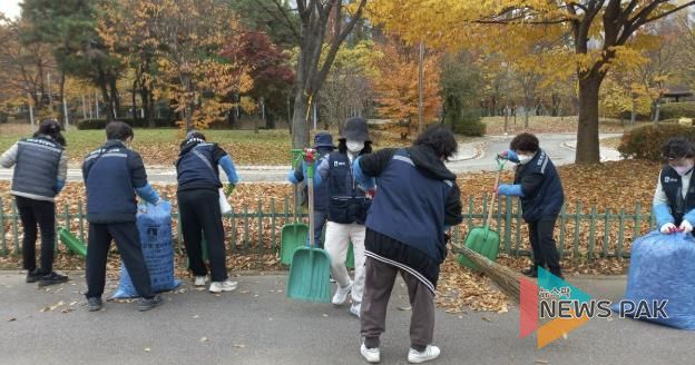 뉴스팍 배상미 기자 | 수원시 영통구 영통2동 행정복지센터는 지난 13일 영통2동 행정복지센터를 출발하여 수원어린이교통공원 인근 도로변과, 벽적골사거리에서 영통고가차도에 이르는 덕영대로 일대의 낙엽청소 활동을 실시했다.