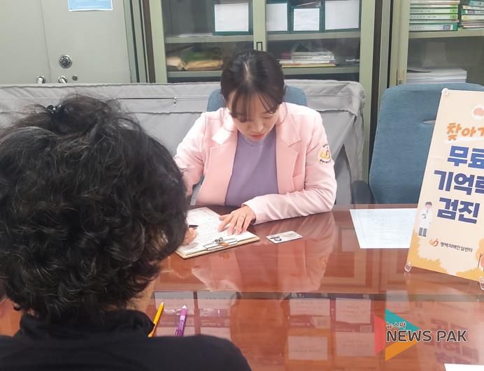 뉴스팍 이소율 기자 | 평택시는 치매 걱정 없는 평택시를 위해 ‘찾아가는 치매조기검진 서비스’를 팽성보건지소(11.24.~28.)에서 실시한다고 14일 밝혔다.