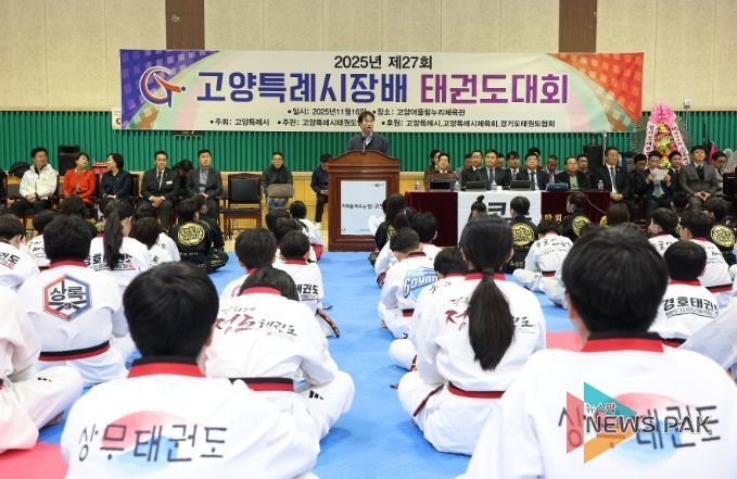 뉴스팍 배상미 기자 | 2025년 제27회 고양특례시장기 태권도대회가 16일 고양어울림누리 체육관에서 개최됐다. 이동환 고양특례시장은 “갈고닦은 실력과 기량을 유감없이 발휘해 후회 없는 경기를 펼쳐주길”이라고 말했다.