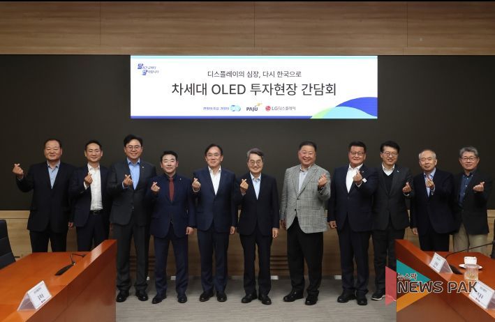 파주 LG디스플레이 R&D동에서 열린 ‘차세대 OLED 투자현장 간담회’에는 김경일 파주시장을 비롯해 박정 국회의원, 안명규·이용욱 도의원, LG디스플레이와 주요 협력사 대표 등 30여 명이 참석했다.