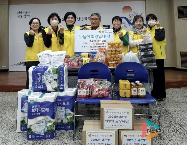 전달된 물품은 율천동 주민들의 자발적 기부로 운영되고 있는 3,000원의 희망기금으로 사전 조사한 과일, 생필품과 슬기로운 공유냉장고 6호점에서 지원받은 반찬 등으로 마련됐다.