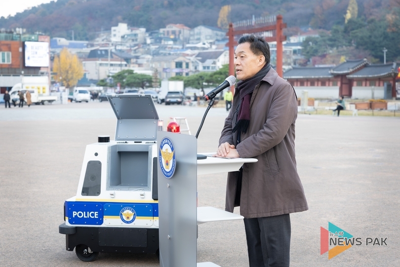 뉴스팍 배상미 기자 | 유네스코 세계문화유산인 수원 화성행궁 광장에 인공지능(AI) 기술을 탑재한 자율주행 순찰 로봇이 등장했다.