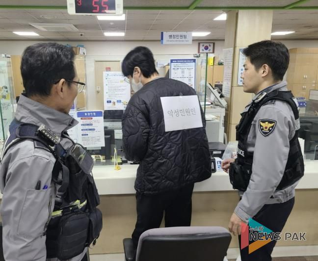 이번 훈련은 동 행정복지센터 민원실에서 민원인의 폭언·폭행 등이 발생한 상황을 가정하여 비상대응반의 역할에 따라 이뤄졌다.