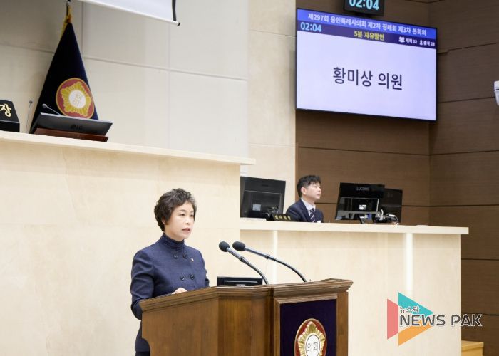 뉴스팍 배상미 기자 | 용인특례시의회 황미상 의원(포곡·모현·유림·역북·삼가동/더불어민주당)은 26일 열린 제297회 2차 정례회 본회의 5분 자유발언을 통해 용인 ‘무명의병(無名義兵) 보존 정책’의 체계적 추진과 처인구 대중교통 사각지대 해소를 위한 버스 노선 전면 재정비를 촉구했다.
