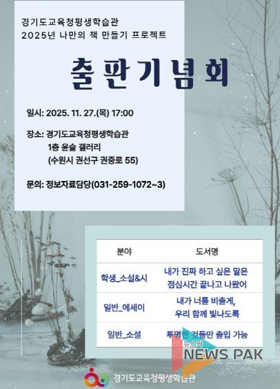 뉴스팍 배상미 기자 | 경기도교육청평생학습관이 ‘2025년 나만의 책 만들기 프로젝트’ 출판기념회를 개최한다.