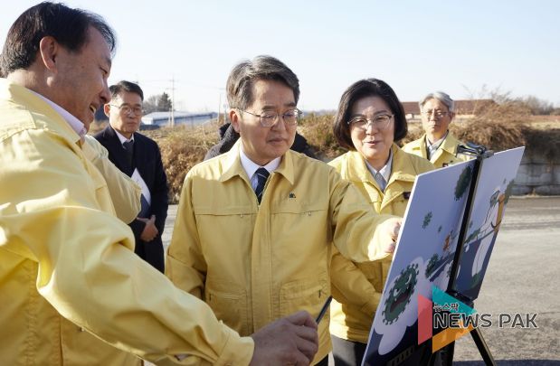 소독시설 점검을 마친 김동연 지사는 28일 하루 동안 현대차그룹 미래 모빌리티 안성 배터리 연구소 투자유치, 안성 동신일반산단 간담회 등 안성 달달버스의 모든 일정을 함께 한 김보라 안성시장, 윤종군 국회의원과 함께 현장에서 즉석 스탠딩 간담회를 갖고 안성시 발전에 대한 의견을 나눴다.