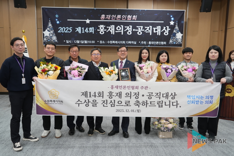 시상식은 홍재언론인협회(회장 윤청신) 주최로 12월 1일 오전 수원특례시의회 1층 다목적실에서 진행됐다.