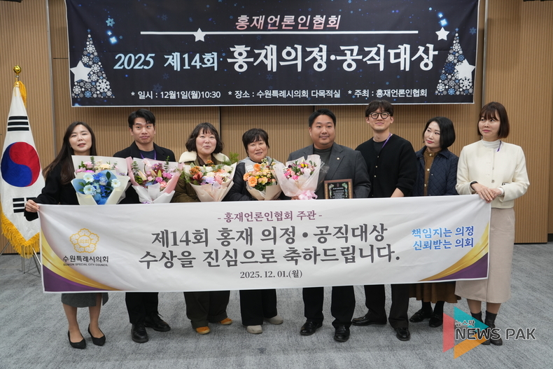 시상식은 홍재언론인협회(회장 윤청신) 주최로 12월 1일 오전 수원특례시의회 1층 다목적실에서 진행됐다.