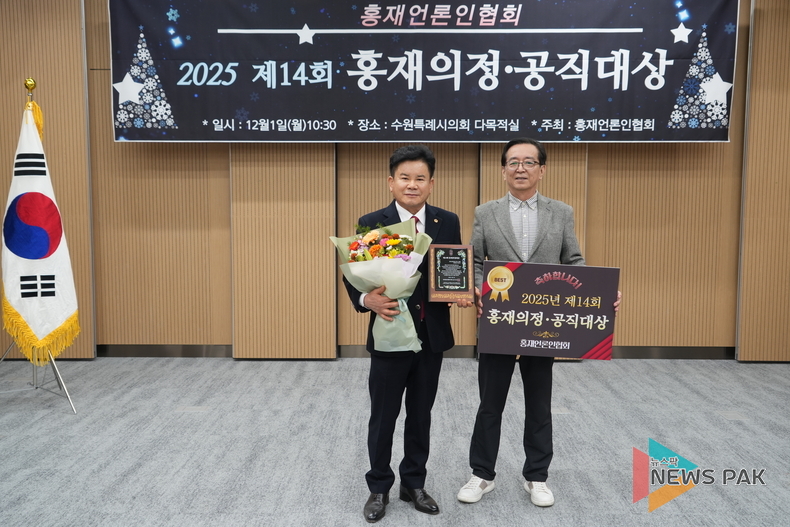 뉴스팍 배상미 기자 | 홍재언론인협회(회장 윤청신, 일자리뉴스뉴스잡 편집국장)는 12월 1일(월) 오전 수원특례시의회 신청사 1층 다목적실에서 제14회 홍재의정대상·공직대상 시상식을 성황리 개최했다.
