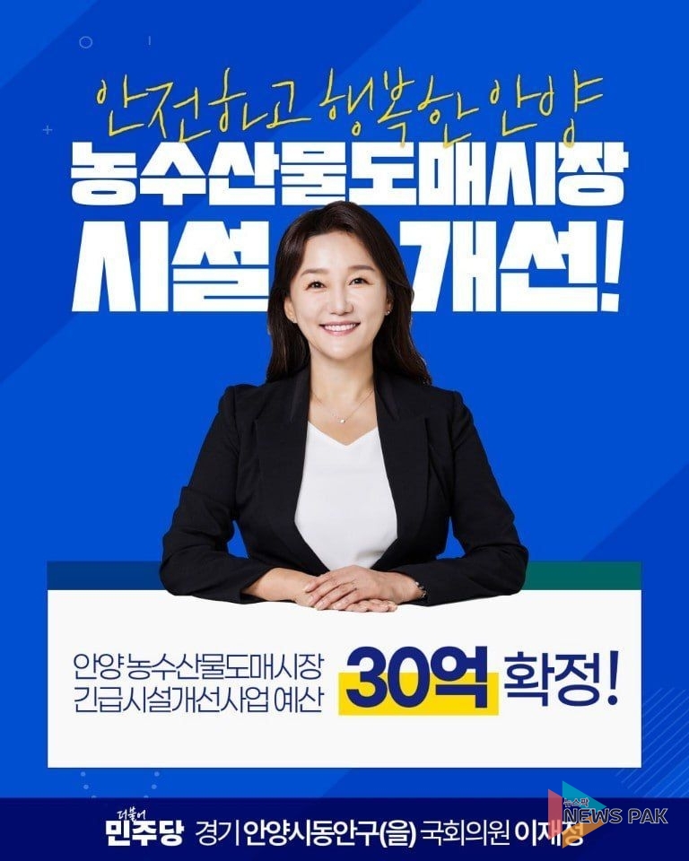 뉴스팍 배상미 기자 | 경기 안양시의 대표적인 유통 거점인 '안양 농수산물도매시장'의 묵은 숙제를 해결할 긴급 시설개선사업 예산 30억 원이 확정됐다. 이번 예산 확보는 노후화된 시설로 불편을 겪던 시장 상인들과 이용 시민들에게 ‘가뭄의 단비’와 같은 소식이 될 전망이다.