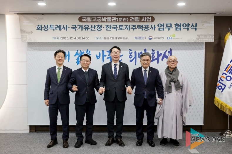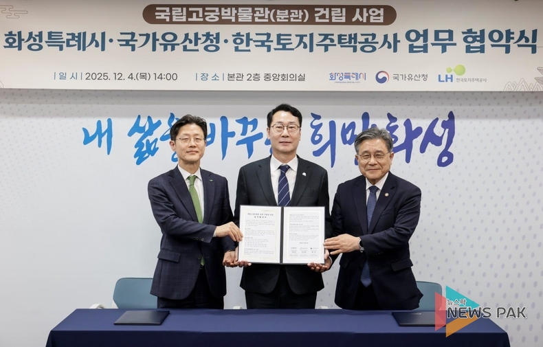 화성시는 지난 4일 화성시청에서 국가유산청(청장 허민), 한국토지주택공사(LH)와 ‘국립고궁박물관 분관 건립을 위한 업무협약(MOU)’을 체결했다고 5일 밝혔다.