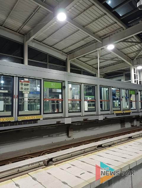 뉴스팍 배상미 기자 | 용인특례시는 용인경전철 이용객의 안전을 위해 승강장 안전문(PSD) 가동문 이탈방지 가이드 슈(guide shoe) 보강공사를 마무리했다고 8일 밝혔다.