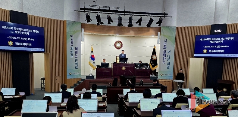한편, 화성시의회는 이날 본회의를 기점으로 9일부터 16일까지 8일간 휴회에 들어간다. 이 기간 동안 예산결산특별위원회는 각 상임위별 예비심사를 거친 ‘2026년도 예산안 및 기금운용계획안’을 최종 심사한다. 내년도 화성시 살림살이의 규모와 방향을 결정짓는 제3차 본회의는 오는 17일 오전 10시에 열릴 예정이다.