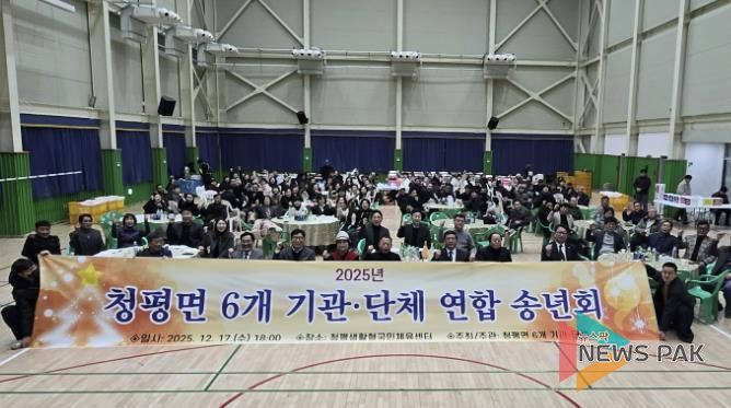 뉴스팍 배상미 기자 | 가평군 청평면은 지난 17일 청평생활형국민체육센터에서 ‘2025년 청평면 6개 기관·단체 연합 송년회’를 개최하고 한 해를 마무리하는 시간을 가졌다.