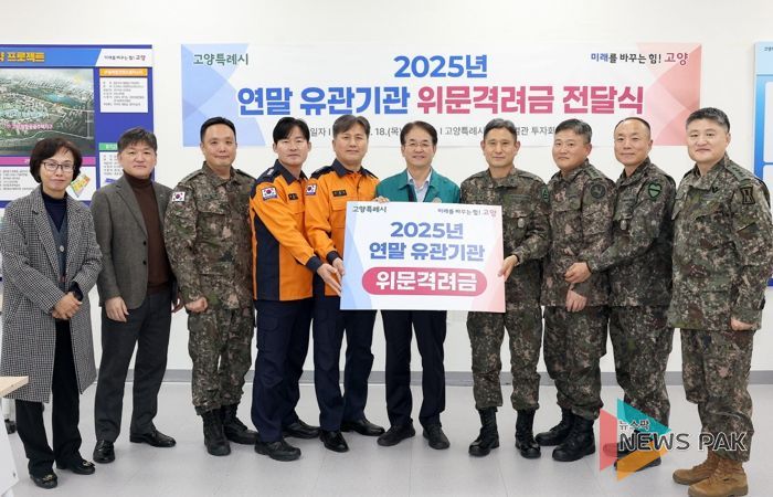 뉴스팍 배상미 기자 | 고양특례시는 연말을 맞아 지난 18일 고양시청 백석 별관에서 군부대 5개소·소방서 2개소와 함께 위문격려금 전달식을 개최했다.