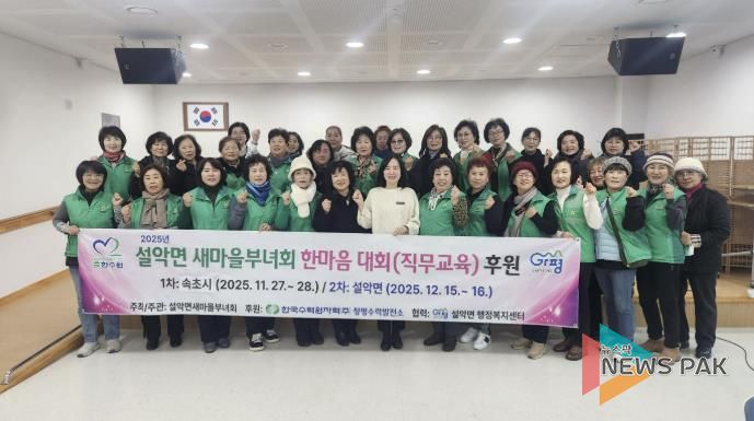 뉴스팍 배상미 기자 | 가평군 설악면 새마을부녀회는 최근 행정복지센터에서 ‘설악면 새마을부녀회 한마음 대회’를 열고 2025년 봉사활동을 모두 마쳤다. 이번 행사는 한국수력원자력㈜ 청평수력발전소의 후원으로 마련됐다.