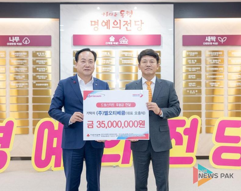 뉴스팍 이소율 기자 | 오산시는 지난 22일 반도체 기계 제조업체인 ㈜엘오티베큠과 드림스타트 아동 지원을 위한 후원금 기탁식을 개최했다.