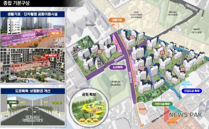 주요 내용으로 ▲제1종 일반주거지역의 제2종 상향을 통한 사업성 제고 ▲탄중로 등 주요 도로 확폭(최대 20m) ▲어린이공원 2개소(5,642㎡) 신설 등이 포함됐으며, 이를 통해 일산 원도심 지역의 기반시설이 개선될 전망이다.