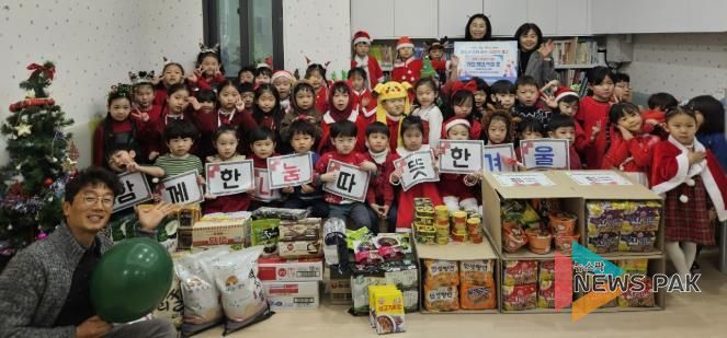뉴스팍 배상미 기자 | 시립힐스테이트푸르지오수원 어린이집은 지난 23일, 수원시 팔달구 매교동에 연말을 맞아 관내 어려운 이웃들에게 원생들이 십시일반 모은 식료품 꾸러미를 후원했다.
