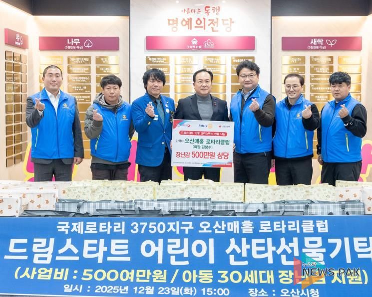 이번 기탁은 오산시 매홀로타리클럽(회장 김창수)이 크리스마스를 맞아 드림스타트 아동들을 위해 마련한 나눔 활동으로, 500만 원 상당의 장난감 꾸러미가 전달됐다. 기탁된 물품은 드림스타트 사례관리 아동 30명에게 직접 전달돼 아이들에게 특별한 성탄 선물이 됐다.