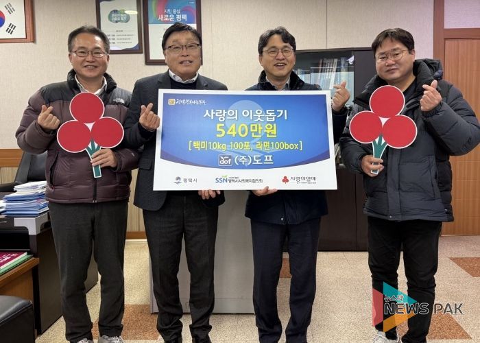 ㈜도프 장동길 대표는 “작은 정성이지만 어려운 이웃들이 따뜻한 연말을 보내는 데 보탬이 되기를 바란다”며 “앞으로도 지역사회와 함께 성장하는 기업으로서 사회적 책임을 다하겠다”고 전했다.