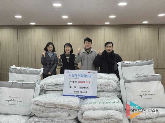 뉴스팍 배상미 기자 | ㈜흥진캐노피는 지난 24일 관내 어려운 이웃이 따뜻한 겨울을 보낼 수 있도록 겨울 이불 30채를 평동행정복지센터에 전달했다.