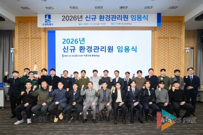 뉴스팍 배상미 기자 | 수원특례시가 26일 시청 중회의실에서 2026년 신규 환경관리원 임용식을 열고, 신규 임용자 21명에게 임용장을 수여했다.