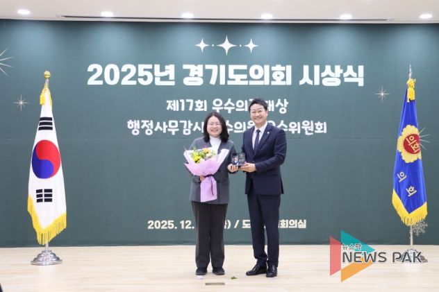 뉴스팍 배상미 기자 | 경기도의회 교육행정위원회 이자형 의원(더불어민주당, 비례)이 12월 26일 2025년 교육행정위원회 행정사무감사 우수의원으로 선정됐다.