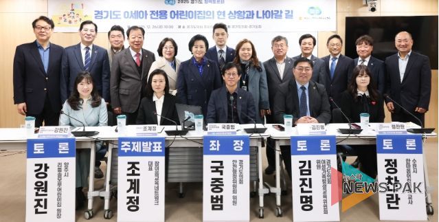 뉴스팍 배상미 기자 | 경기도의회 안전행정위원회 국중범 의원(더불어민주당, 성남4)이 좌장을 맡은 '경기도 0세아 전용 어린이집의 현 상황과 나아갈 길' 정책토론회가 26일 경기도의회 중회의실에서 개최됐다. 이 토론회는 경기도와 경기도의회가 공동으로 주최하는 ‘2025 경기도 정책토론회’의 일환으로 마련됐다.