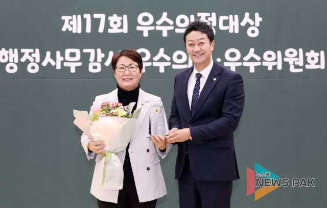 뉴스팍 배상미 기자 | 경기도의회 성복임 의원(더불어민주당, 군포4)이 26일 대한민국시도의회의장협의회가 시상하는 '제17회 우수의정대상'을 수상했다.
