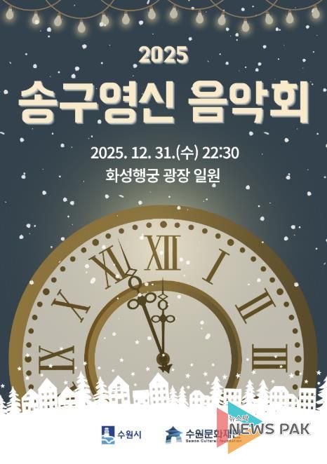 뉴스팍 배상미 기자 | 수원문화재단은 오는 31일 오후 10시 30분부터 수원 화성행궁 광장 일원에서 2025년을 마무리하고 2026년 신년을 맞이하는 ‘2025 송구영신 음악회’를 개최한다.