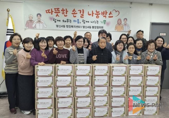 뉴스팍 배상미 기자 | 고양특례시 덕양구 행신4동은 지난 29일, 통장들이 매달 자발적으로 모은 기부금으로 마련한 ‘따뜻한 손길 나눔박스’를 독거어르신에게 전달했다고 밝혔다.
